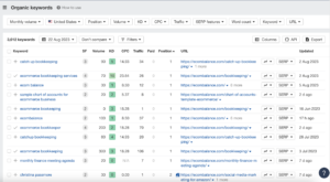 - Ranking #1-3 for top terms like “ecommerce bookkeeping”