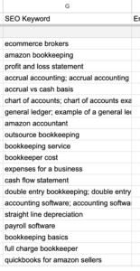 Think of medium and low-intent keywords where business owners want to learn more about their bookkeeping, accounting, and finances.